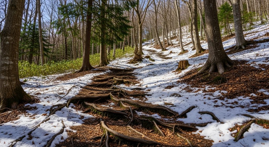 しかし、冬の12月から2月はヤマビルが落ち葉や石の下、土中で越冬しているため、活動が完全に停止しています。ヤマビルを一切気にすることなく安心して登山を楽しめるのは、冬の仏果山・高取山ハイキングにおける大きなメリットです。なお、3月以降は注意が必要で、気温が高い年には3月中旬にすでにヤマビルの活動が確認された例もあります。冬ハイキングの時期としては12月から2月が最も安全です。