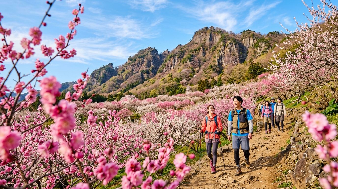 幕山は梅林散策、登山、温泉、グルメと一日で多くの楽しみを味わえるスポットです。ここでは春の幕山を一日で満喫するモデルコースをご紹介します。