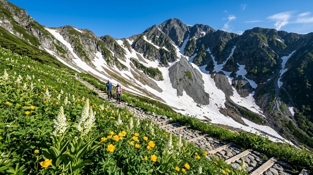 6月という時期は、残雪が豊富に残りながら雪解けとともに高山植物が芽吹き始める、一年の中でも特に劇的な変化の季節です。タカネザクラの開花やコイワカガミなど早咲きの花々と雪景色の組み合わせは、7月や8月とはまた異なる独特の美しさを持っています。ただし、6月の山頂を目指す本格登山は雪山装備と経験が不可欠であり、安易な挑戦は非常に危険です。観光目的であれば千畳敷カールの遊歩道散策を楽しみつつ、夏山シーズンの下見として訪れるのも賢い選択といえるでしょう。