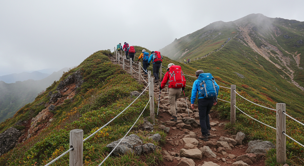 環境保護への配慮も登山者の責務です。高山植物の採取は法律で禁止されており、踏み荒らしも厳禁です。指定された登山道から外れず、ゴミは必ず持ち帰り、自然環境への影響を最小限に抑える行動を心がけてください。