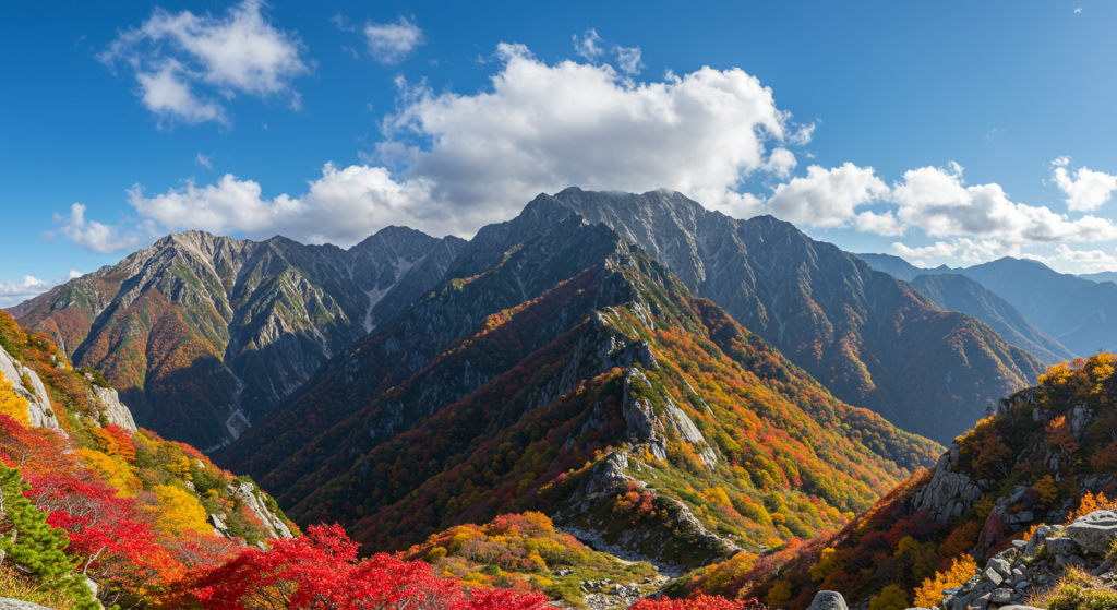 北アルプスの穂高連峰にある涸沢カールは、標高2300メートルに位置する日本屈指の紅葉スポットです。氷河によって削られた圏谷地形は、奥穂高岳、北穂高岳、前穂高岳に囲まれた壮大な景観を誇り、特に秋の紅葉シーズンには息をのむような美しさを見せます。多くの登山者がテント泊で訪れるこの山域は、日本の山岳地帯で体験できる最高の自然体験の一つとして知られています。涸沢での紅葉観賞とテント泊は、都市部では決して味わうことのできない特別な体験となり、満天の星空やモルゲンロートの美しさも堪能できます。立山黒部アルペンルートとは異なり、本格的な登山装備と技術が必要な山岳地帯ですが、適切な準備があれば初心者でも挑戦可能な魅力的な目的地です。