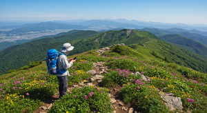 必須装備として、足首を保護するハイカットで防水性のある登山靴、日帰りで20〜30リットル程度の容量のザック(レインカバーも忘れずに)、地図とコンパス、ヘッドランプ、水と食料などが挙げられます。特に重要なのが、霊仙山の山頂部は広大で目標物が少ないため、霧が発生した際に道迷いの危険性が高いという点です。GPSアプリも有効ですが、バッテリー切れに備え、紙の地図とコンパスは必携です。また、秋は日が暮れるのが早いため、万が一の下山遅延に備えてヘッドランプは必ず携行しましょう。
